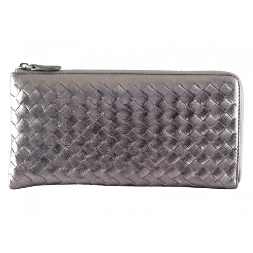 Bottega Veneta Intrecciato Nappa Leather Zip Around Wallet Grey Sliver