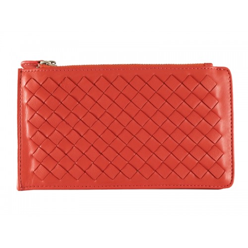 Bottega Veneta Intrecciato Nappa Leather Zip Top Wallet Red