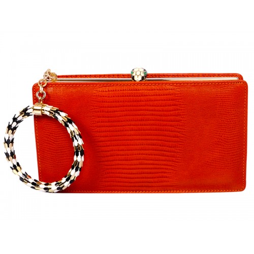 Pochette Bvlgari Serpenti con cornice in pelle di lucertola arancione