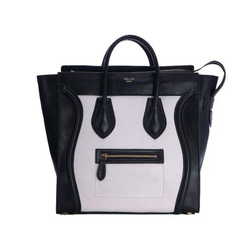 Borsa Tote media Celine Luggage in pelle di vitello nera/camoscio crema