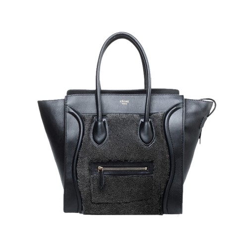 Borsa Tote media Celine Luggage in pelle di vitello nera/lana nera