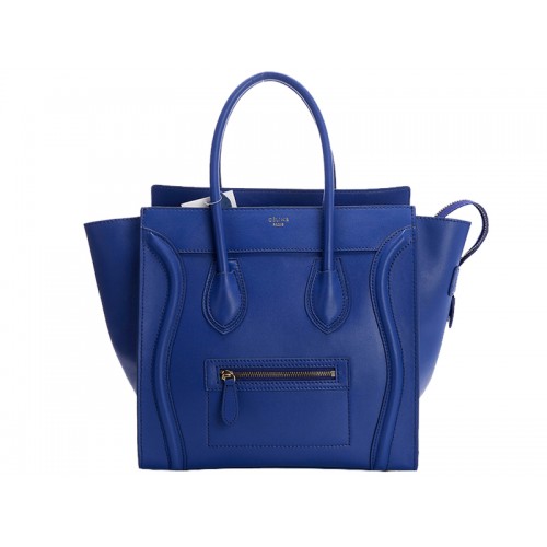 Borsa Tote media Celine Luggage in pelle di vitello blu brillante