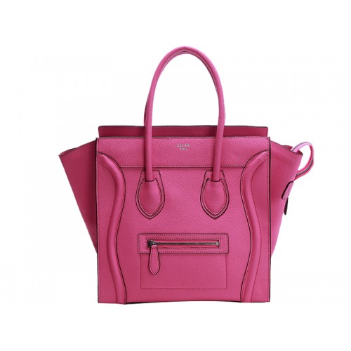 Borsa Tote media Celine Luggage in pelle di vitello rosa fluo