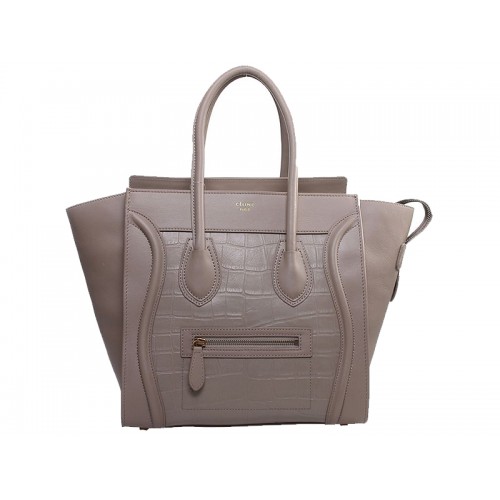 • Borsa tote media Celine Luggage in pelle di vitello color cachi con effetto coccodrillo