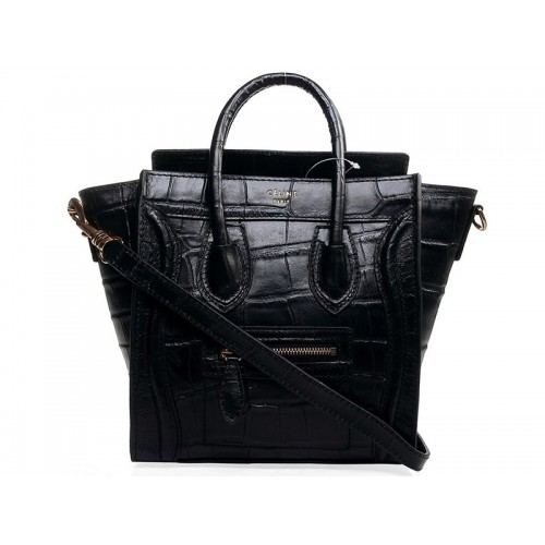 Mini borsa Celine Luggage in pelle di coccodrillo nera