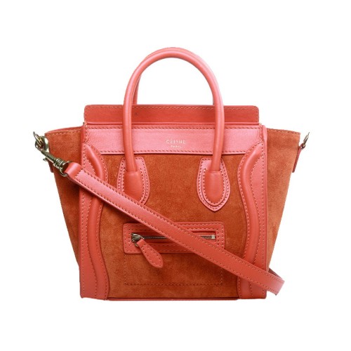 Celine Luggage Mini Tote in pelle di vitello arancione/camoscio arancione