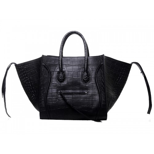 Borsa tote Celine Luggage Phantom Square in pelle di coccodrillo nera