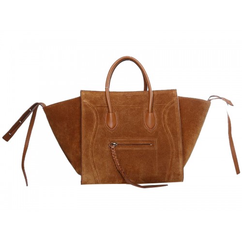 Borsa tote Celine Luggage Phantom Square in pelle scamosciata color cammello