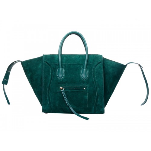 Borsa tote quadrata Phantom Luggage di Celine in pelle scamosciata color erba