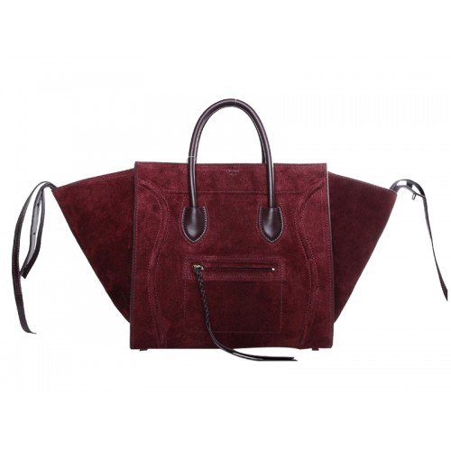 Borsa tote quadrata Phantom Luggage di Celine in pelle scamosciata color vino
