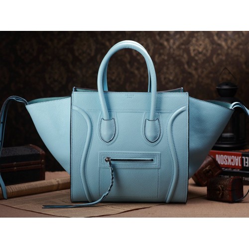Borsa tote Celine Luggage Phantom Square in pelle Togo blu chiaro