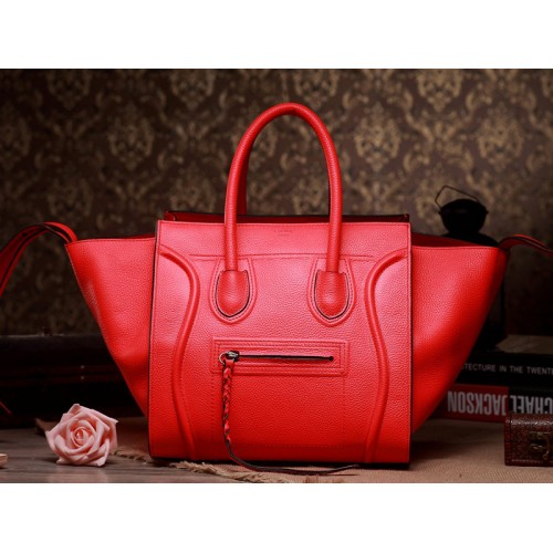 Borsa tote Celine Luggage Phantom Square in pelle Togo arancione e rossa