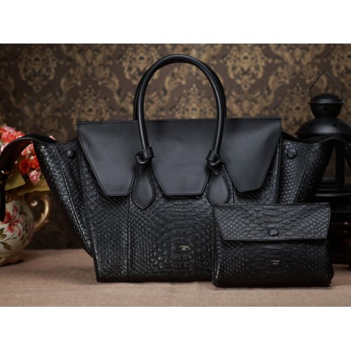 Borsa a mano Celine Tie Nano in pelle nera con manico in pitone