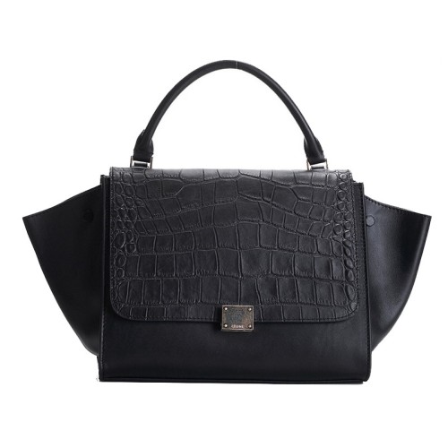 • Borsa a tracolla Celine Trapeze in pelle di vitello coccodrillo/nera