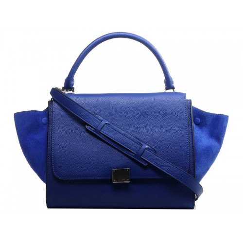 Borsa a tracolla Celine Trapeze in pelle di vitello con camoscio blu