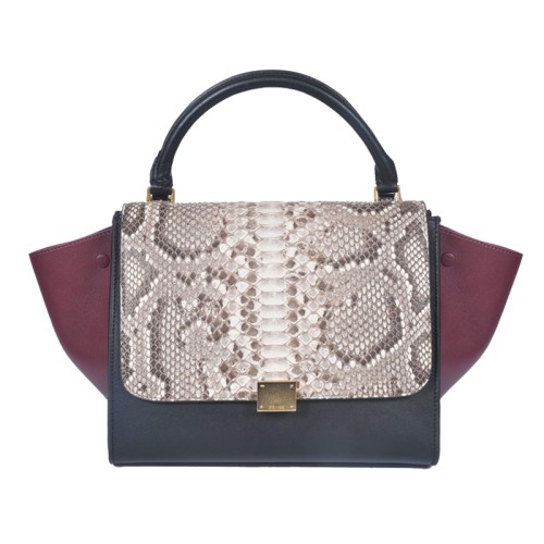 Borsa a tracolla Celine Trapeze in pelle di pitone color crema/nero/vino