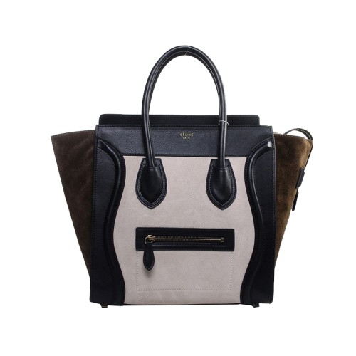 Borsa Tote Celine Luggage Media in Pelle di Vitello Beige Chiaro/Casual Oliva