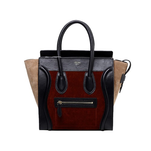 Borsa piccola Celine Luggage in pelle di vitello nera/camoscio vino