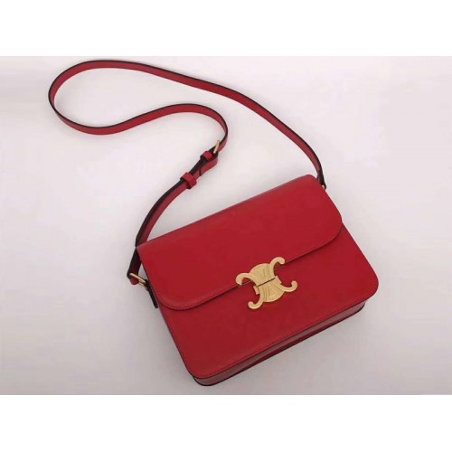 Borsa Celine Triomphe media in pelle di vitello lucida rossa