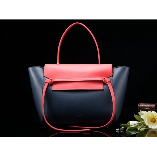 Borsa a tracolla Celine Mini in pelle di vitello liscia blu notte con rosso indiano