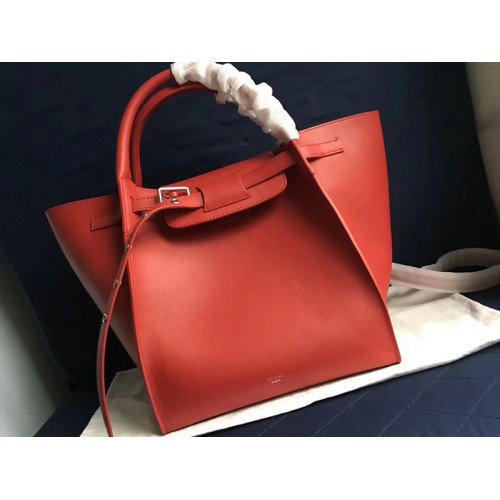 Borsa Celine piccola grande con tracolla lunga in morbida pelle di vitello granata rossa