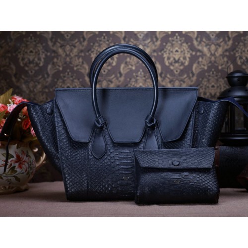 • Borsa a mano Celine Tie Nano in pelle blu pitone