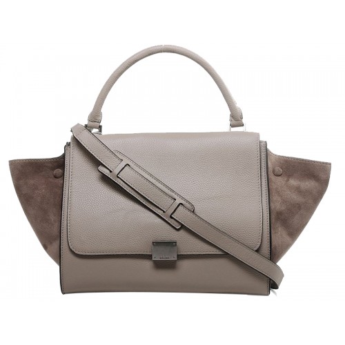 Borsa a tracolla Celine Trapeze in pelle di vitello con camoscio grigio