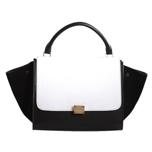 Borsa a tracolla Celine Trapeze in pelle di vitello multicolore bianco/nero/camoscio nero