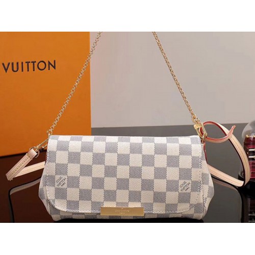 La versatile Pochette Favorite è deliziosa nella tela Damier Azur. La sua forma pura e femminile lo rende ideale per tutte le occasioni.