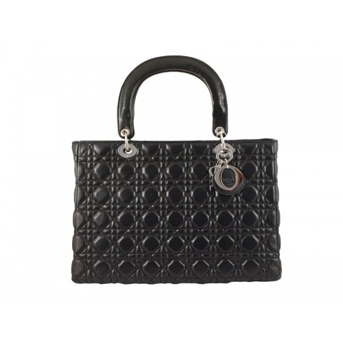 Il glamour classico emana da questa borsa dolcemente sofisticata. Ispirata alla trapuntatura vintage cannage di Dior, una griglia geometrica è cucita su morbida pelle di agnello, ulteriormente accentuata da hardware rifinito con gioielli. Con piccoli manici in pelle e scintillanti ciondoli Lady Dior.