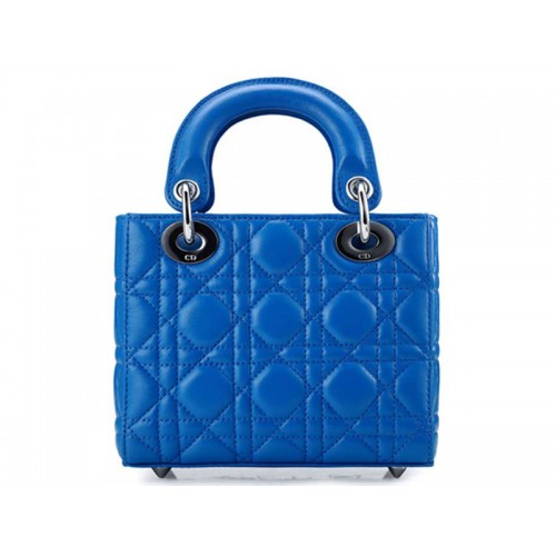 Borsa Dior Nano in pelle con hardware argento blu