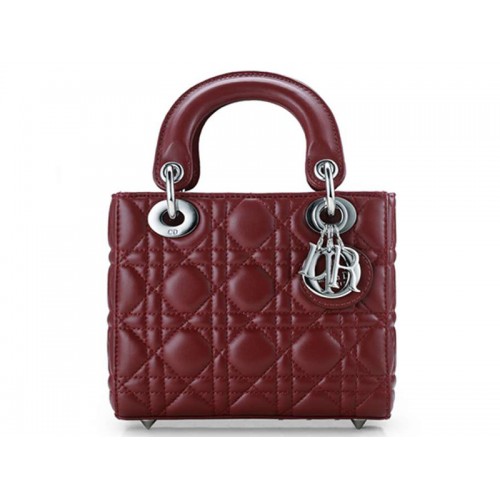 Borsa Dior Nano in pelle con hardware argento e bordeaux