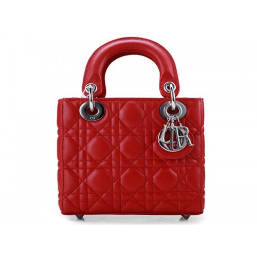 Borsa Dior Nano in pelle con hardware argento e rossa