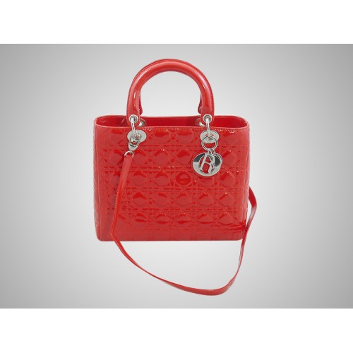 Il glamour classico emana da questa borsa dolcemente sofisticata. Ispirata alla trapuntatura vintage cannage di Dior, una griglia geometrica è cucita su morbida pelle di agnello, ulteriormente accentuata da hardware rifinito con gioielli. Con piccoli manici in pelle, tracolla rimovibile e scintillanti ciondoli Lady Dior.