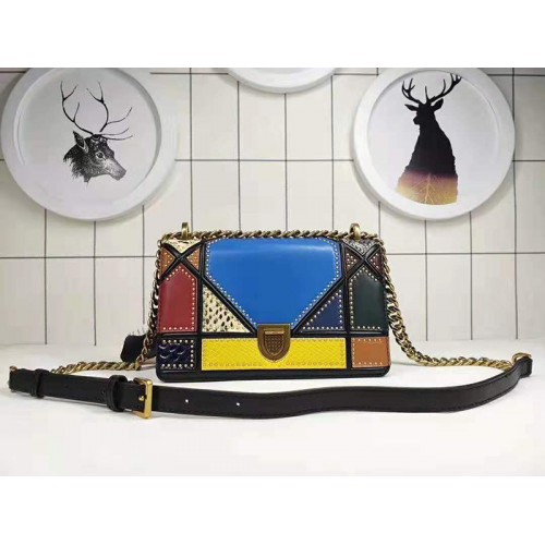Borsa Dior Diorama in pelle di vitello patchwork multicolore blu