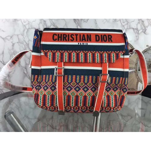 Borsa a tracolla Dior Diorcamp in tela ricamata arancione