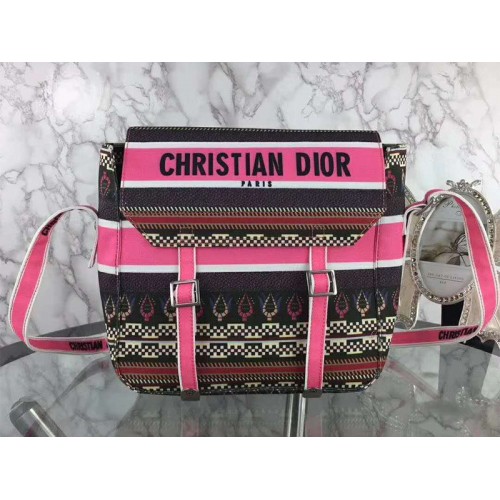 Borsa a tracolla Dior Diorcamp in tela ricamata rosa