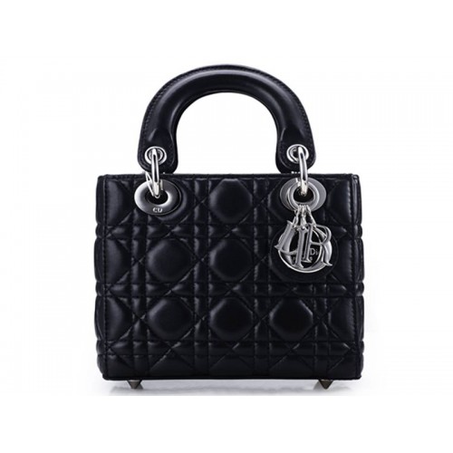 Borsa Dior Nano in pelle con hardware argento e nera