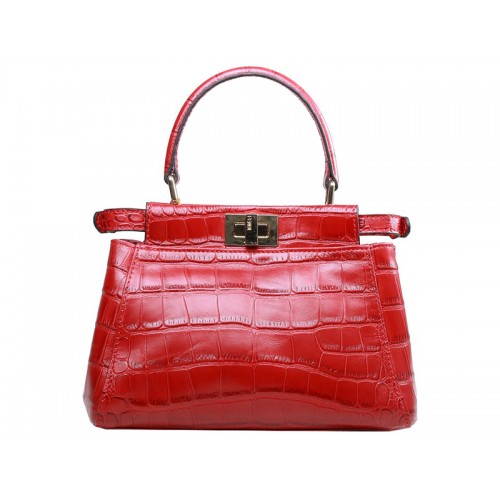 Borsa Fendi Iconic Mini Peekaboo in pelle di coccodrillo rossa