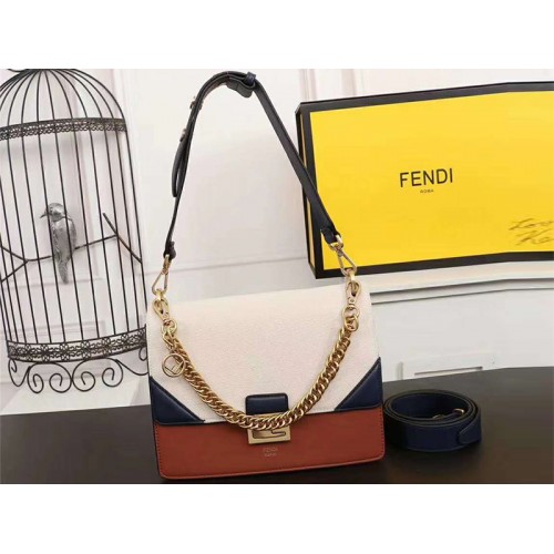 Borsa Fendi Kan I in pelle di vitello color crema