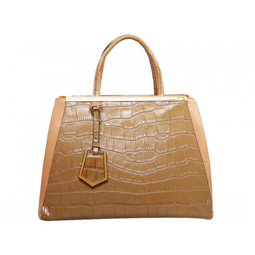 Borsa tote Fendi 2jours in pelle di vitello color coccodrillo beige