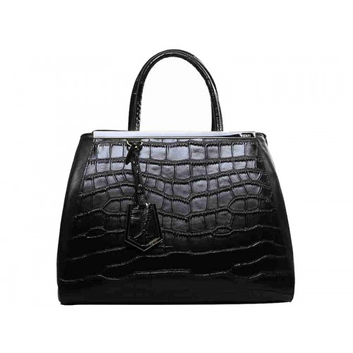• Borsa tote Fendi 2jours in pelle di vitello nera coccodrillo