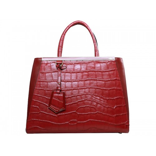 Borsa tote Fendi 2jours in pelle di vitello rosso coccodrillo