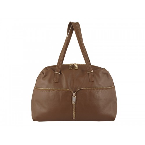 Borsa a mano Fendi in pelle di vacchetta con cerniera frontale, marrone