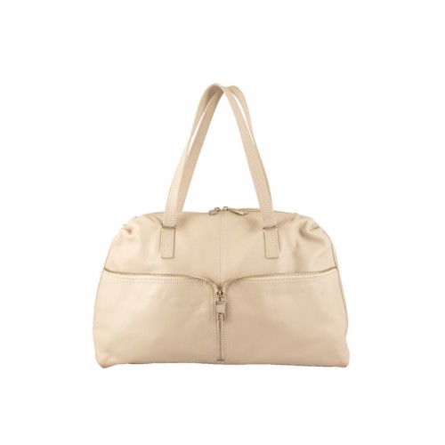 Borsa a mano Fendi in pelle di vacchetta con cerniera frontale bianco sporco