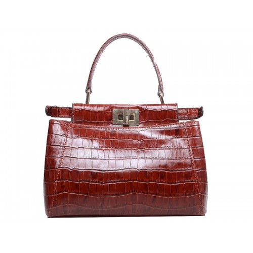 Borsa Fendi Iconic Mini Peekaboo in pelle di coccodrillo bordeaux