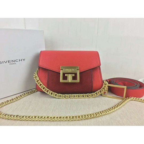 • Borsa Givenchy piccola gv3 in pelle martellata e pelle scamosciata rossa