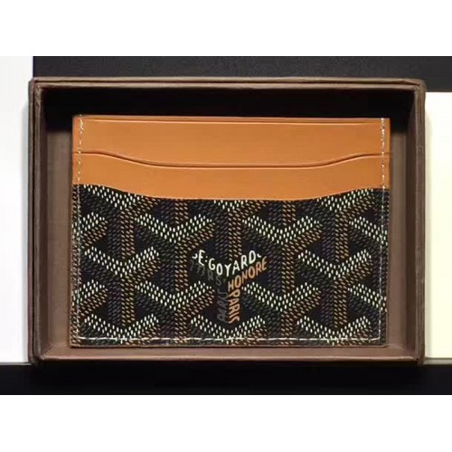Porta carte Goyard Goyardine Saint Sulpice nero con finiture in pelle marrone