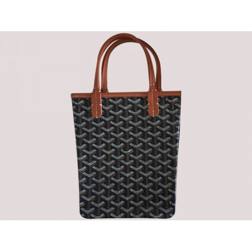 Borsa tote Goyard Poitiers nera con finiture in pelle marrone