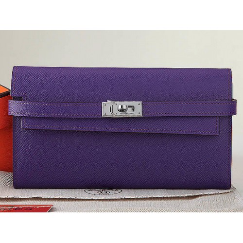 Portafoglio lungo Kelly in pelle di vitello originale Hermes Epsom viola